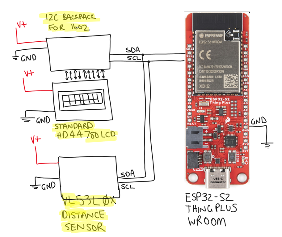Note that it is important to ground the ESP32-S2 Thing Plus WROOM to the same ground as the other components.