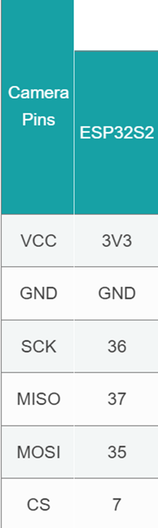 It seems like the camera interfaces to the ESP32S2 Wroom using a set of SPI connectors which are: