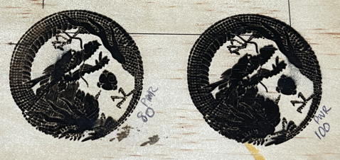 Thus, i makes more sense that you need to use more laser on something that has been varnished and that additional power I would suggest is around 10-15% to get the same kind of result.