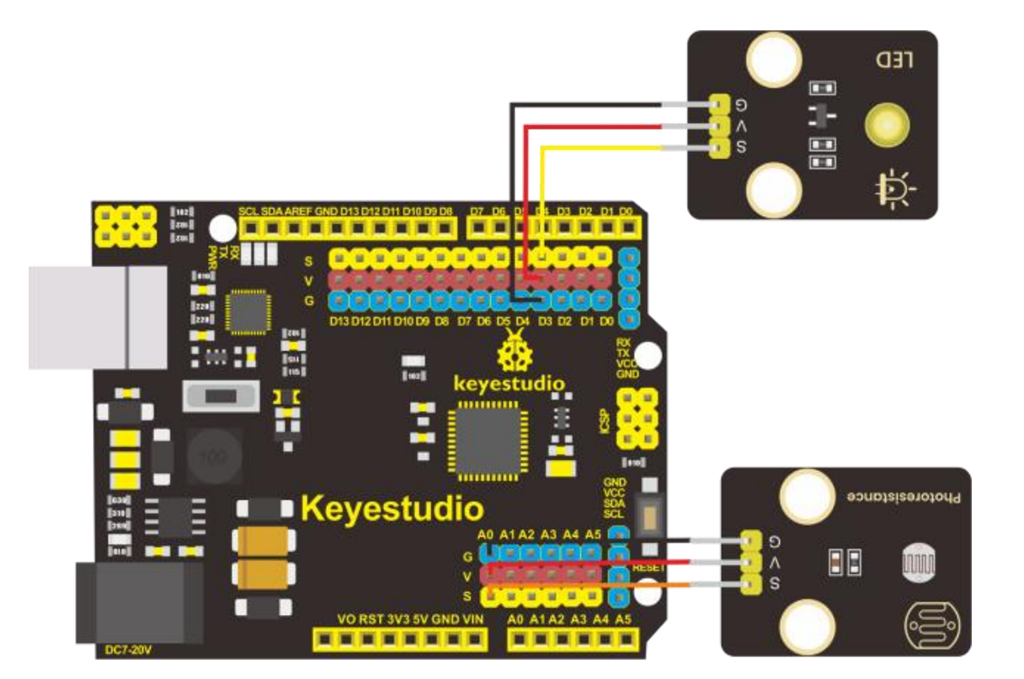 The result is as shown above, both sound and light when the light sensor falls below a certain level.